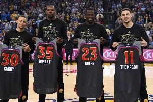 杜兰特96、库里94、克莱90、追梦88、伊戈达拉79。