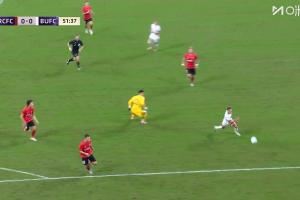 差点又来一个!萨拉赫突破传前点,加克波打门被挡