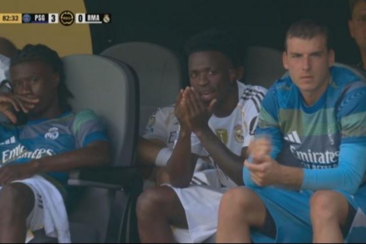 体育资讯07月10日讯 世俱杯半决赛,皇马0-4负于巴黎圣日耳曼,维尼修斯因被拍到在皇马0-3落后时偷笑,受到了球迷的批评。