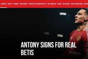 转会贝蒂斯!曼联官方告别安东尼:俱乐部全员祝他未来一切顺利