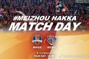 赛事预告:中超第24轮补赛,梅州客家vs青岛海牛,10月4日19:00