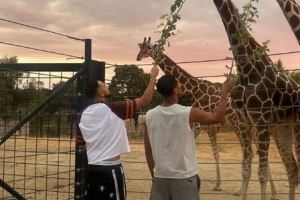 难得闲暇时光,皇马中场贝林厄姆社媒晒和长颈鹿互动照
