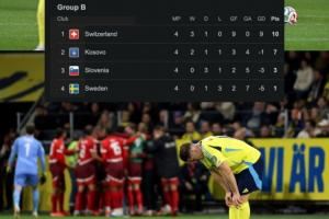 体育资讯10月14日讯 世预赛欧洲区小组赛B组第4轮,世界排名第32的瑞典主场0-1遭世界第91科索沃双杀,遭遇世预赛3连败,4轮仅1分无缘直通世界杯。