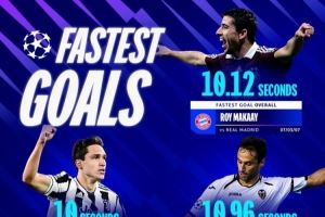 ■以下是欧冠五大进球最快纪录: