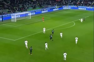 乌龙!图拉姆膝盖磕球,阿塞拜疆门将将球捞进球门,法国3-1领先
