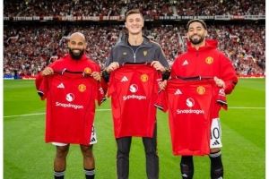 库尼亚、姆贝莫、塞斯科亮相老特拉福德,曼联社媒晒三位新援合照